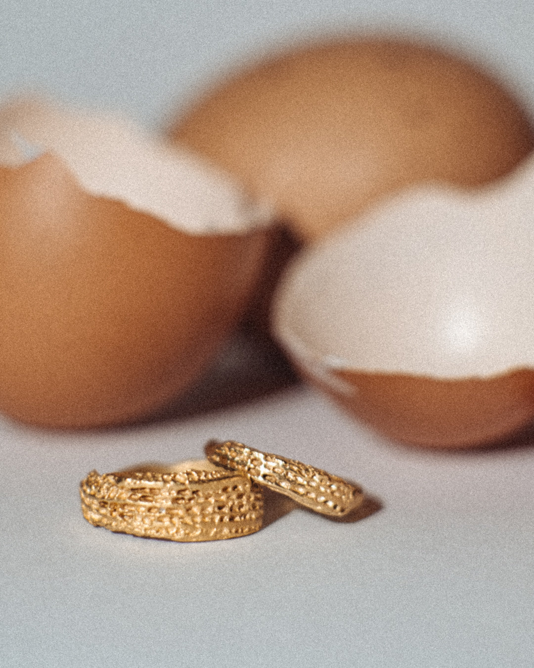 The collection consists of 12 pieces crafted in 925 silver and 925 silver with gold plating, including three necklaces, earrings in different sizes designed to be worn alone or combined, a bracelet, and three rings. The campaign accompanying the collection reflects the sense of rebuilding that inspired the creativity behind it. With small, obvious motifs reminiscent of the warmer months—such as shells, cowries, and crabs—featured on the pieces, the jeweler introduces a more relaxed perspective to her jewelry, which inherently possesses a unique character.