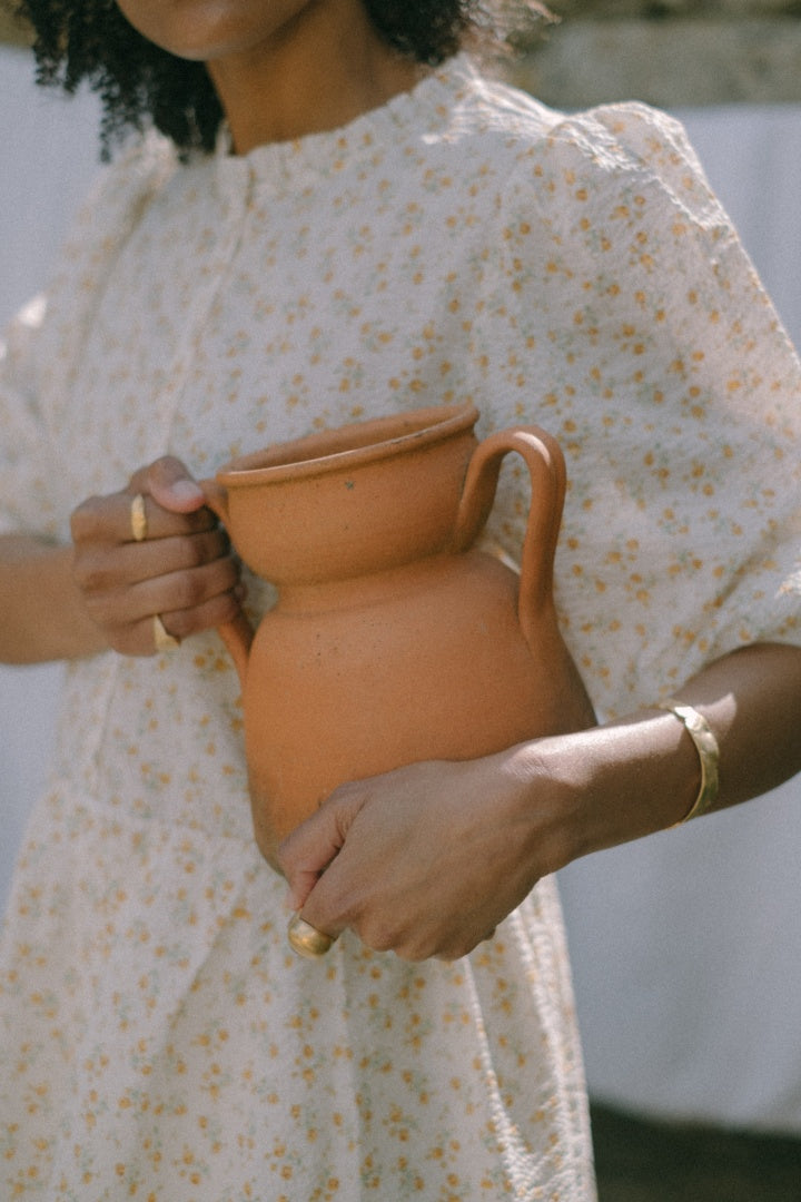“I didn’t have a set plan when I started thinking and designing this new collection,” explains Raquel Poço. “The name Maria evokes so many different references that all converge on a common point: femininity. This was my starting point, along with the way I like to create — drawing from personal memories and the environment around me.” Just like in her debut collection *Wabi Sabi*, inspired by Japan, elements of nature are a clear presence in *Três Marias*, accompanied by a style DNA that embraces imperfection, a result of handmade production that gives each piece a unique character.