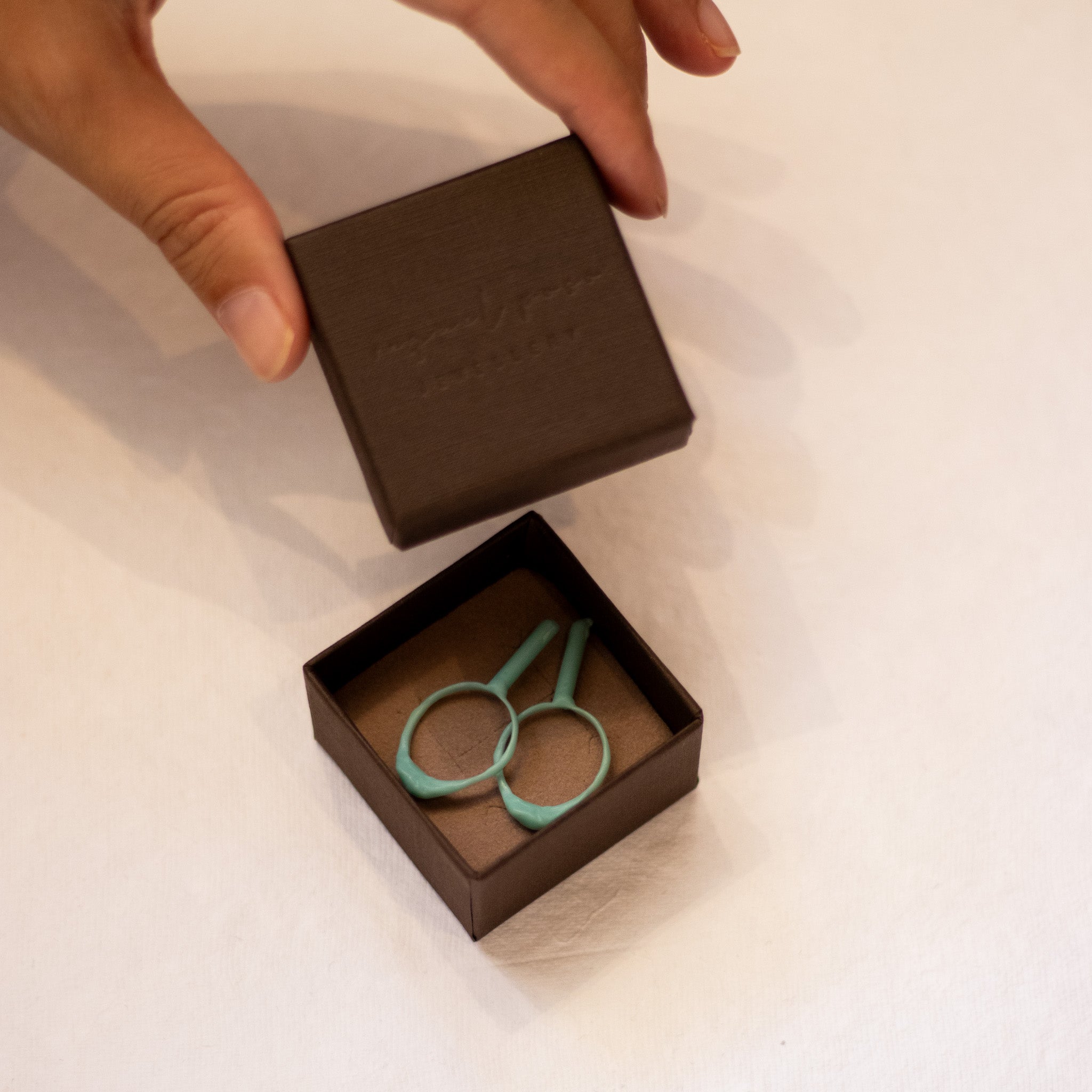 To make your ring, you will need to use a candle. When you heat the mold in wax, press gently on your finger, wait a few seconds, and your fingerprints will be left on the ring, creating a unique piece.