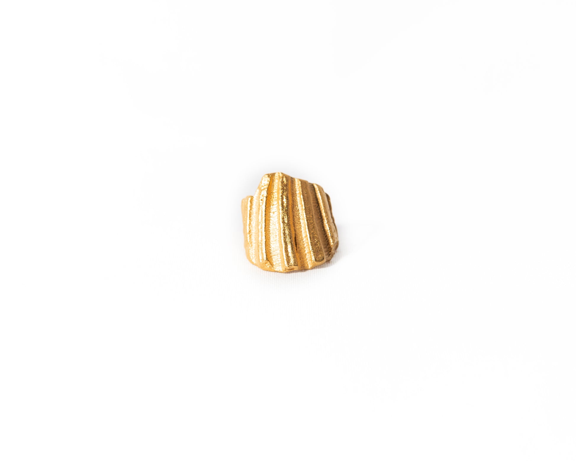The Pires Ring stands out for its sculptural presence and organic geometry. Handcrafted in gold-plated silver, its textured surface captures light in shifting tones, echoing the marks of time and touch. The Pires Ring embodies quiet strength and timeless sophistication — a modern heirloom shaped by tradition.