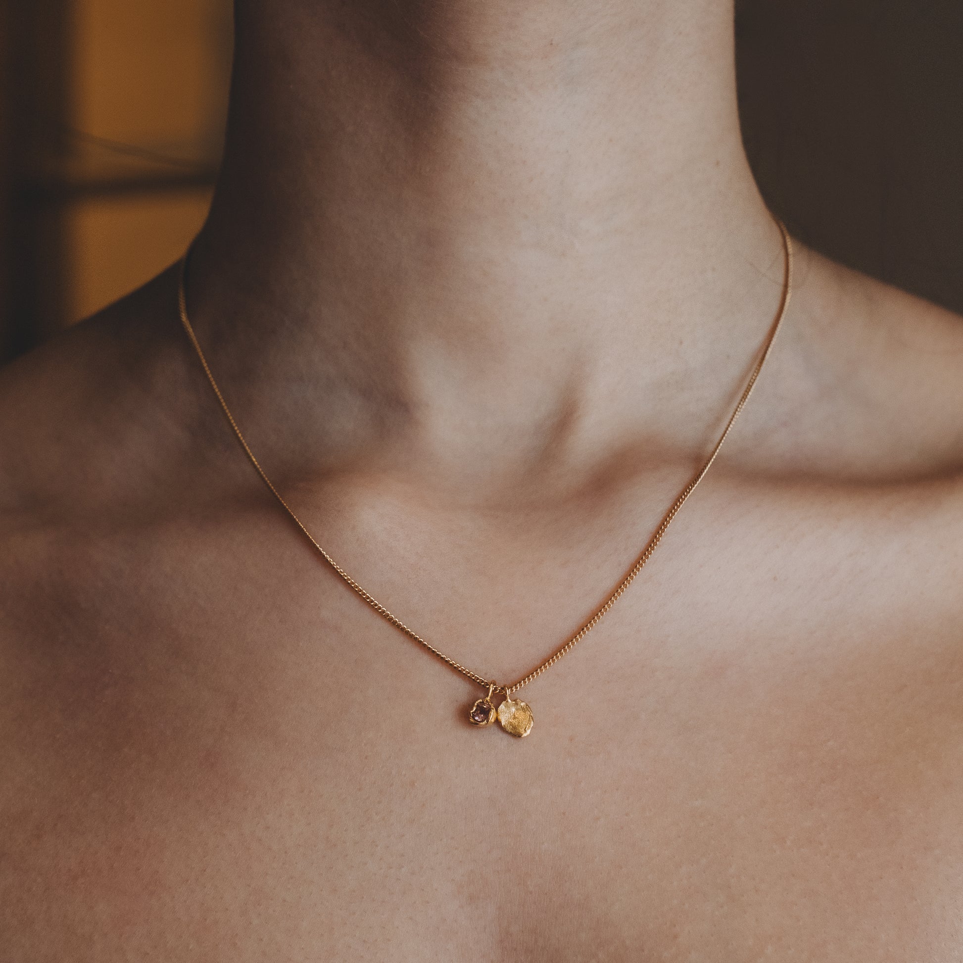 Necklace in 925 silver and 925 silver with 24 kt gold plating, with natural stones.