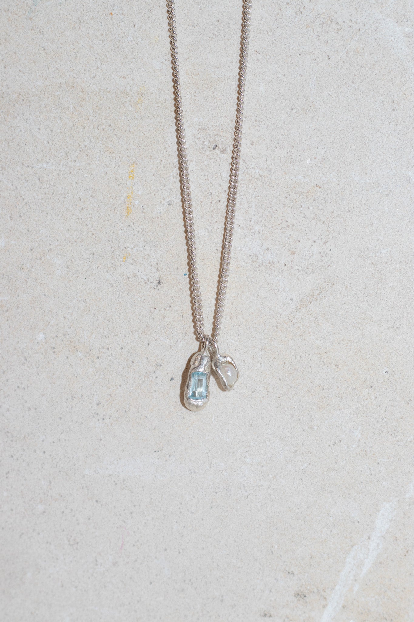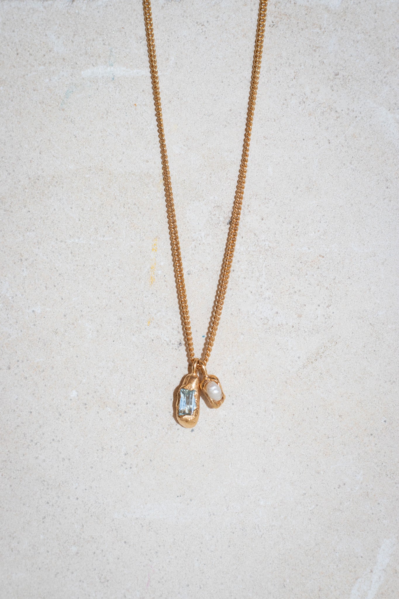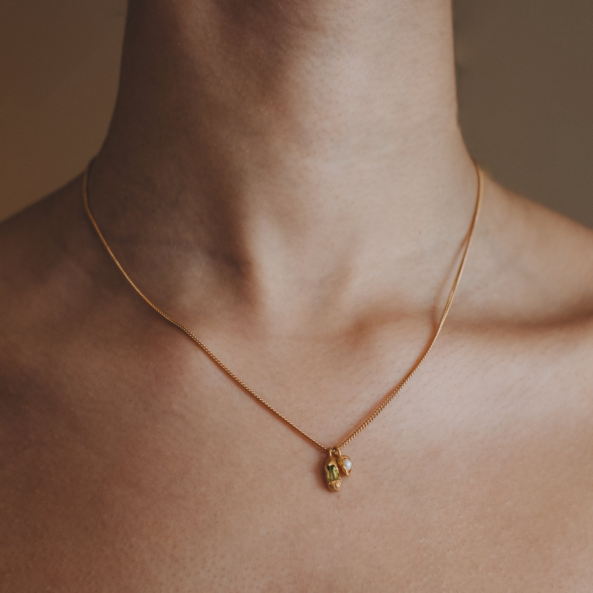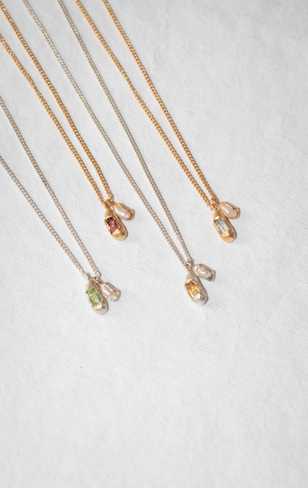 Necklace in 925 silver and 925 silver with 24 kt gold plating, with natural stones and a real pearl.