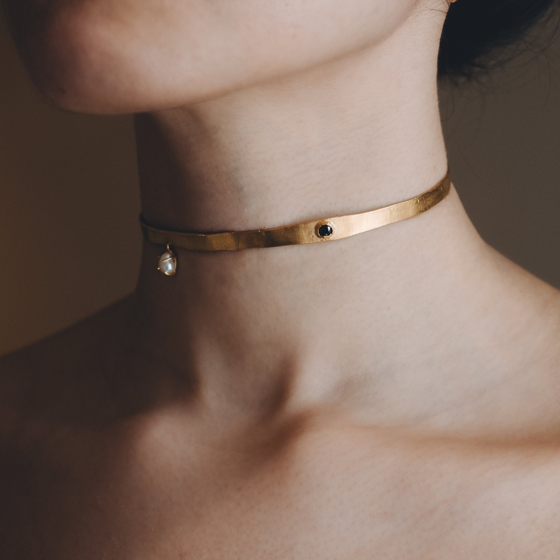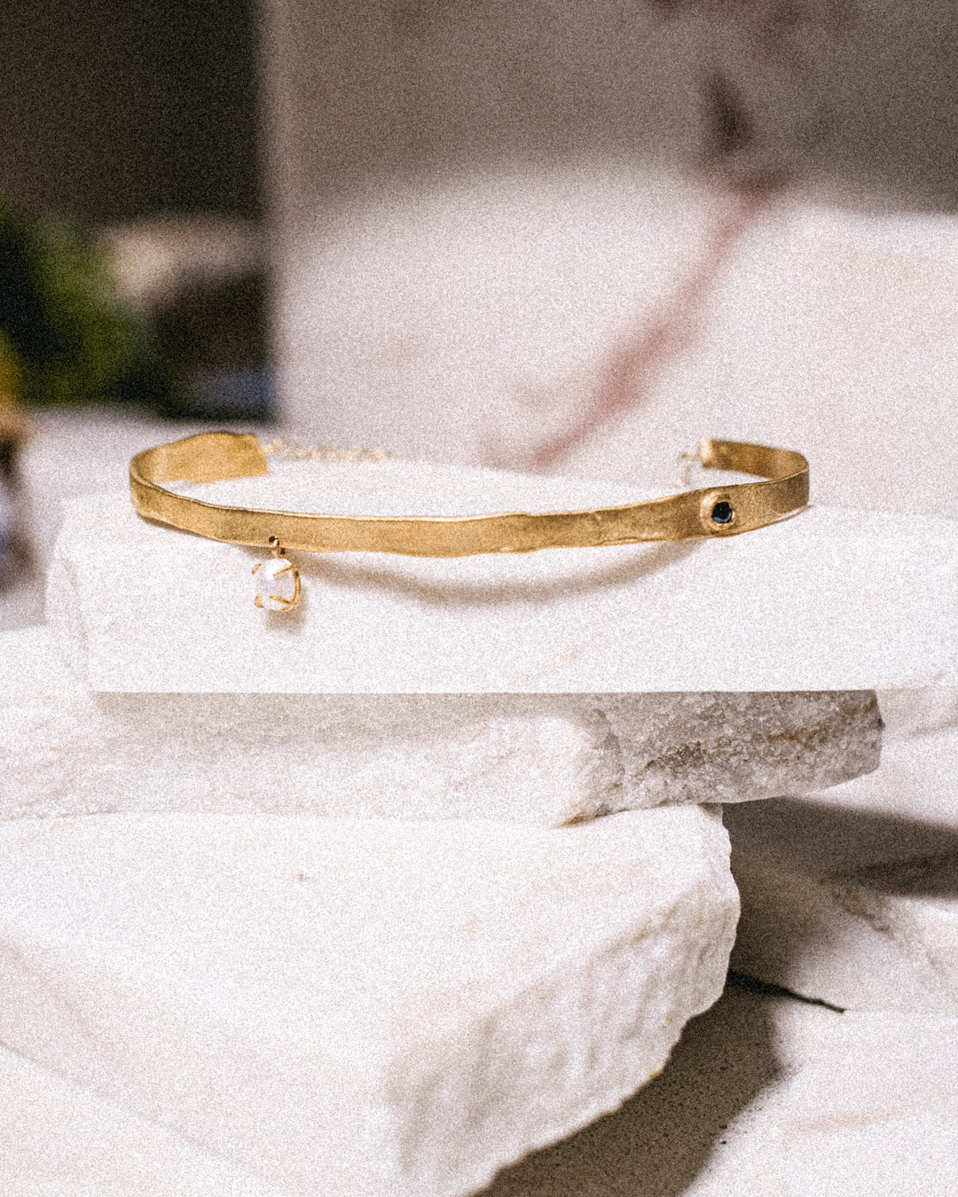 Necklace in 925 silver and 925 silver with 24 kt gold plating, with a natural pearl and a Smoky Quartz.