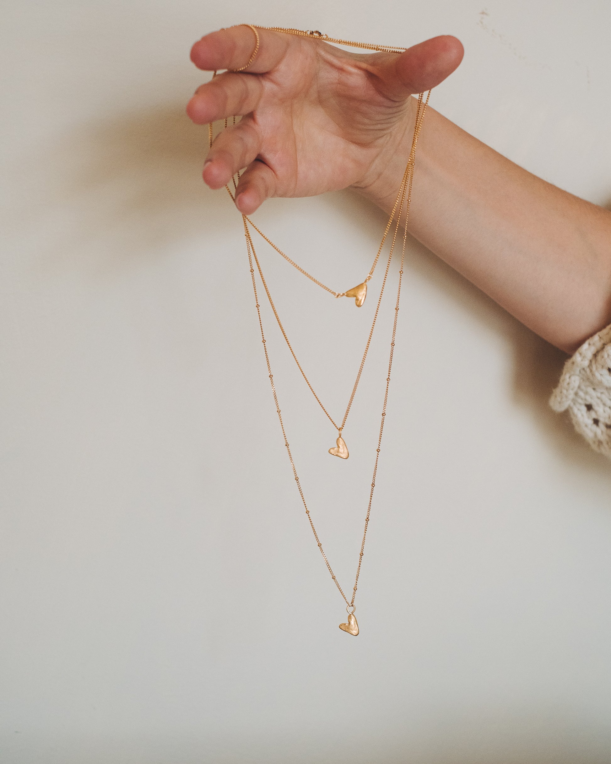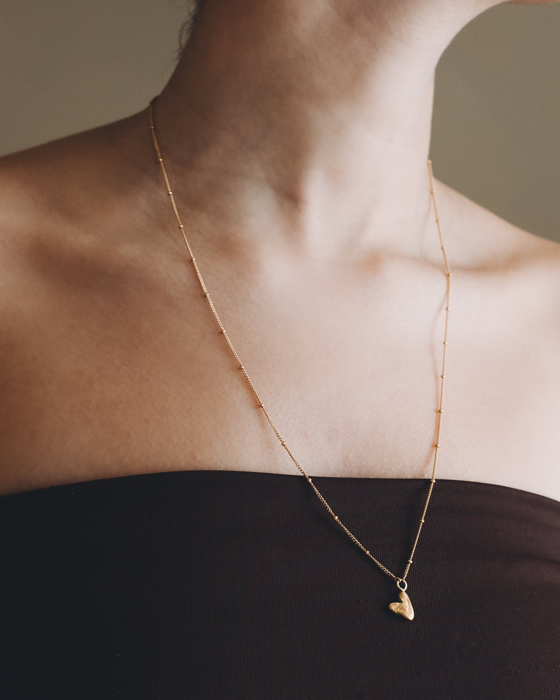 Softly sculpted and full of feeling, this pendant captures the warmth of something made by hand. A heart that rests close, as if held in your own.