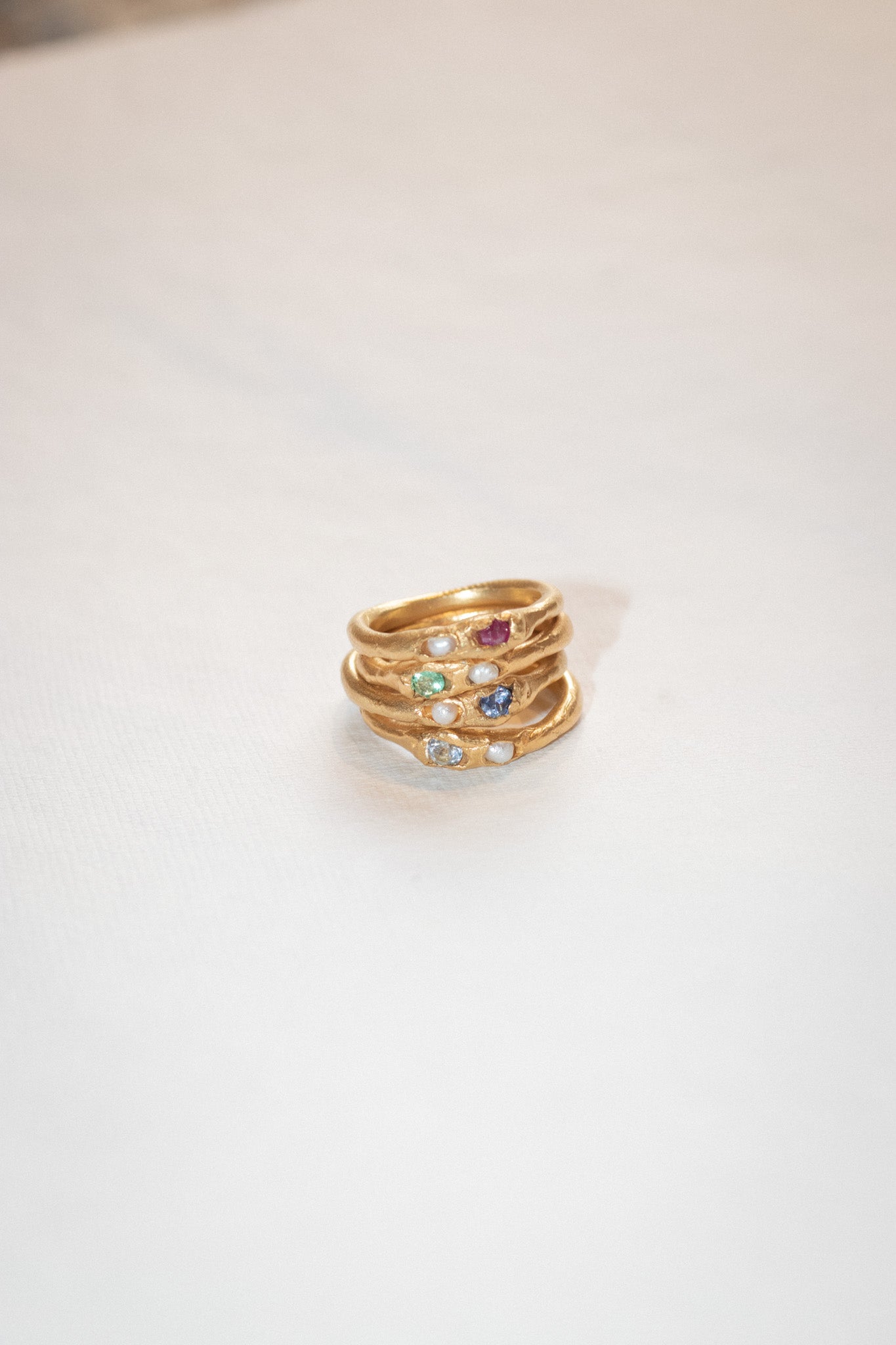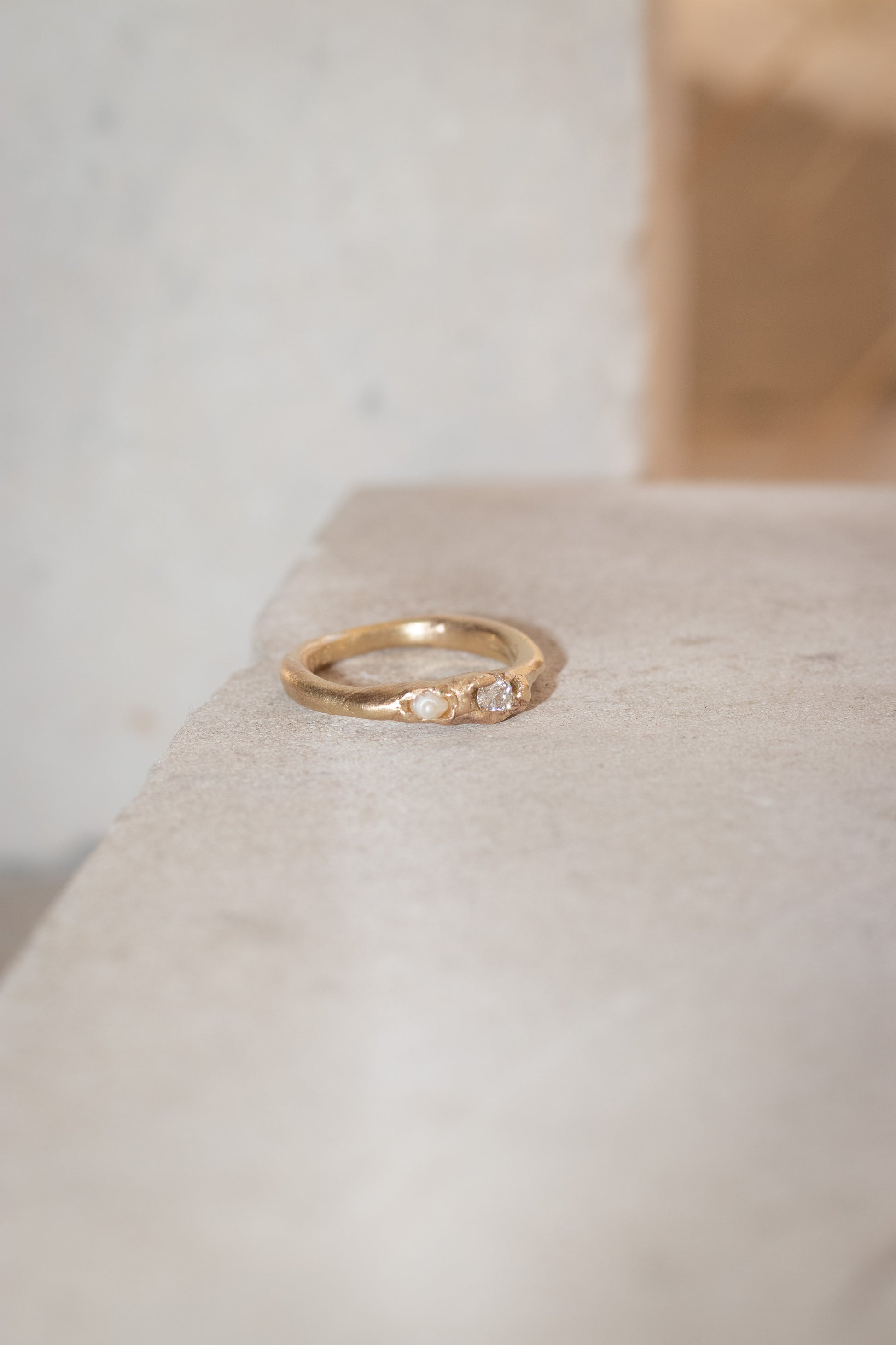 Gentle and luminous, this ring evokes the calm of water and the quiet strength found in patience. Its flowing form suggests growth in harmony. A reminder that beauty often blooms in its own time.