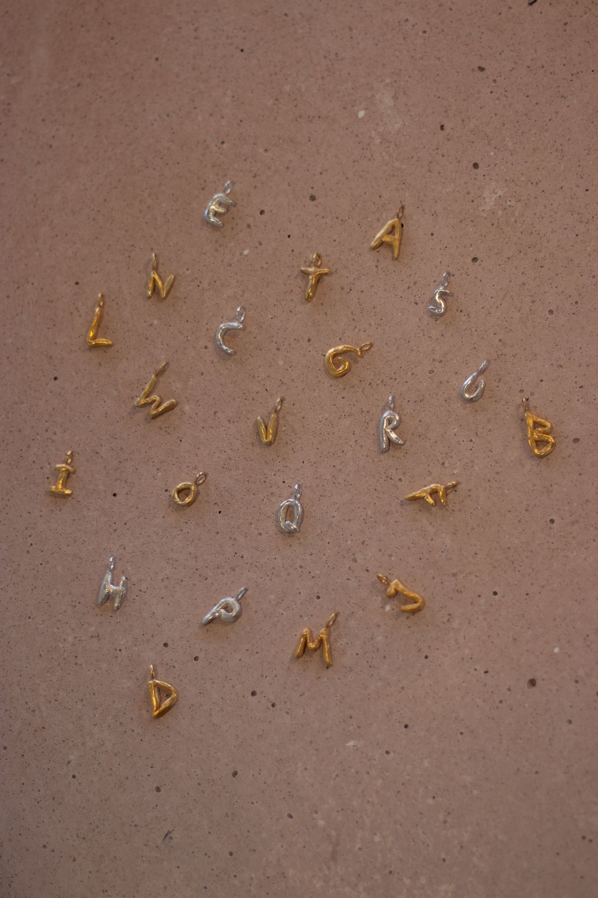 A single letter, full of meaning. Handcrafted with organic shapes and imperfect textures, it feels both raw and personal — a quiet symbol of identity, memory, and connection.