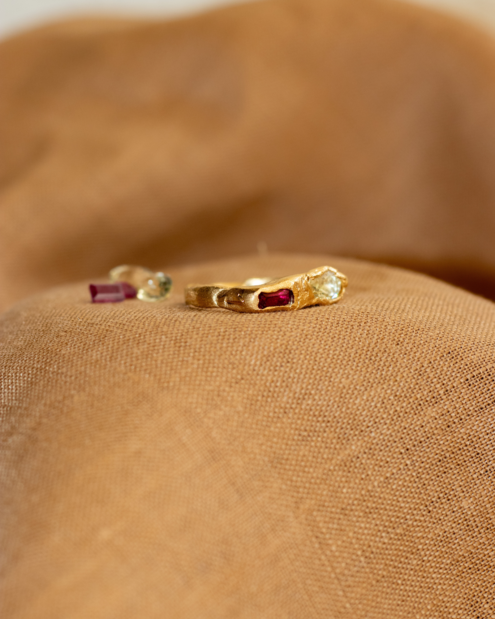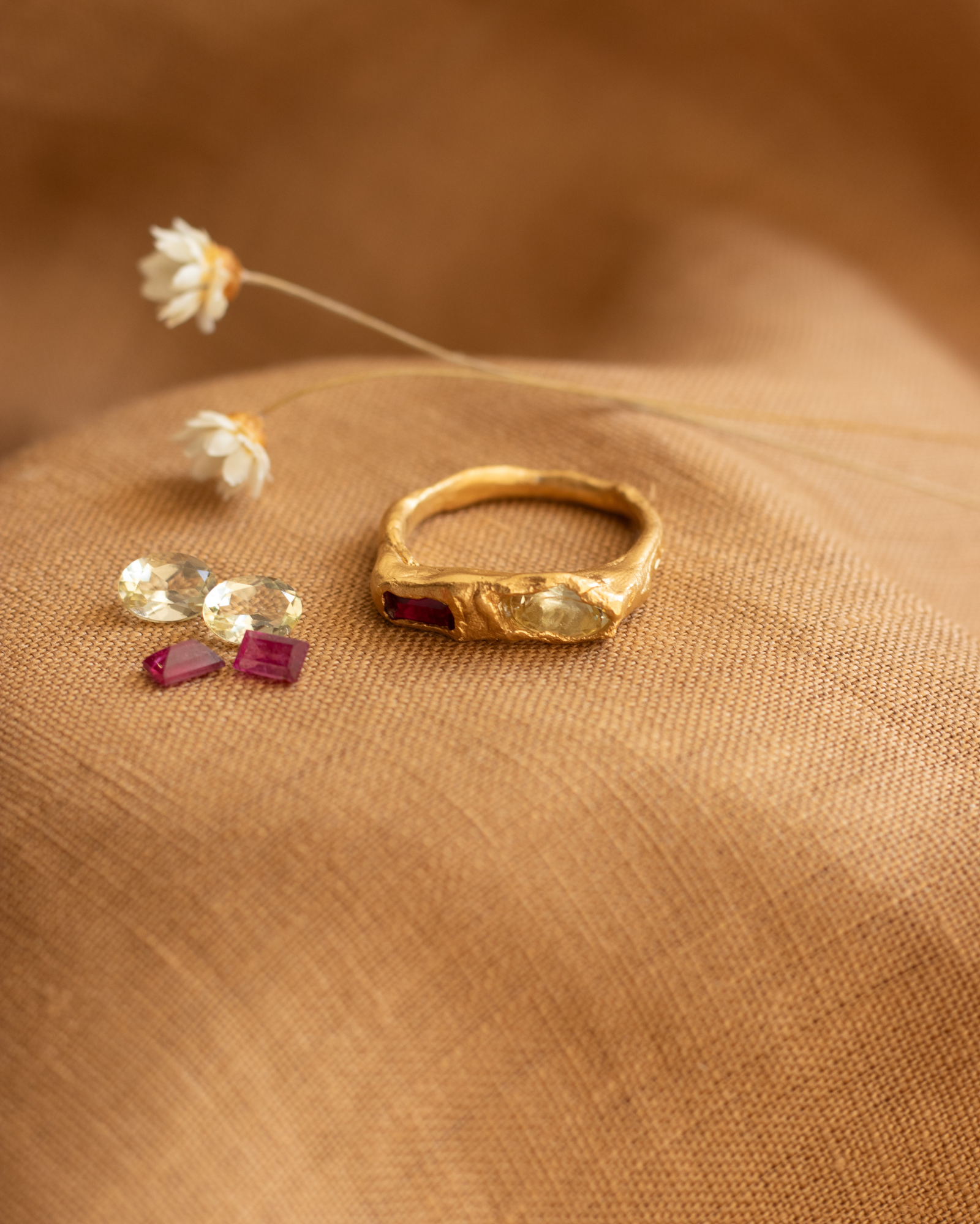 Ring in 925 silver, 925 silver with 24 kt gold plating and 9k gold with stones.