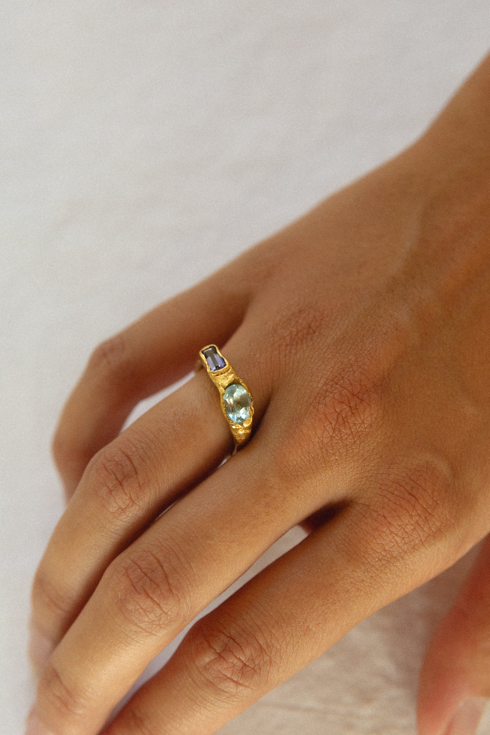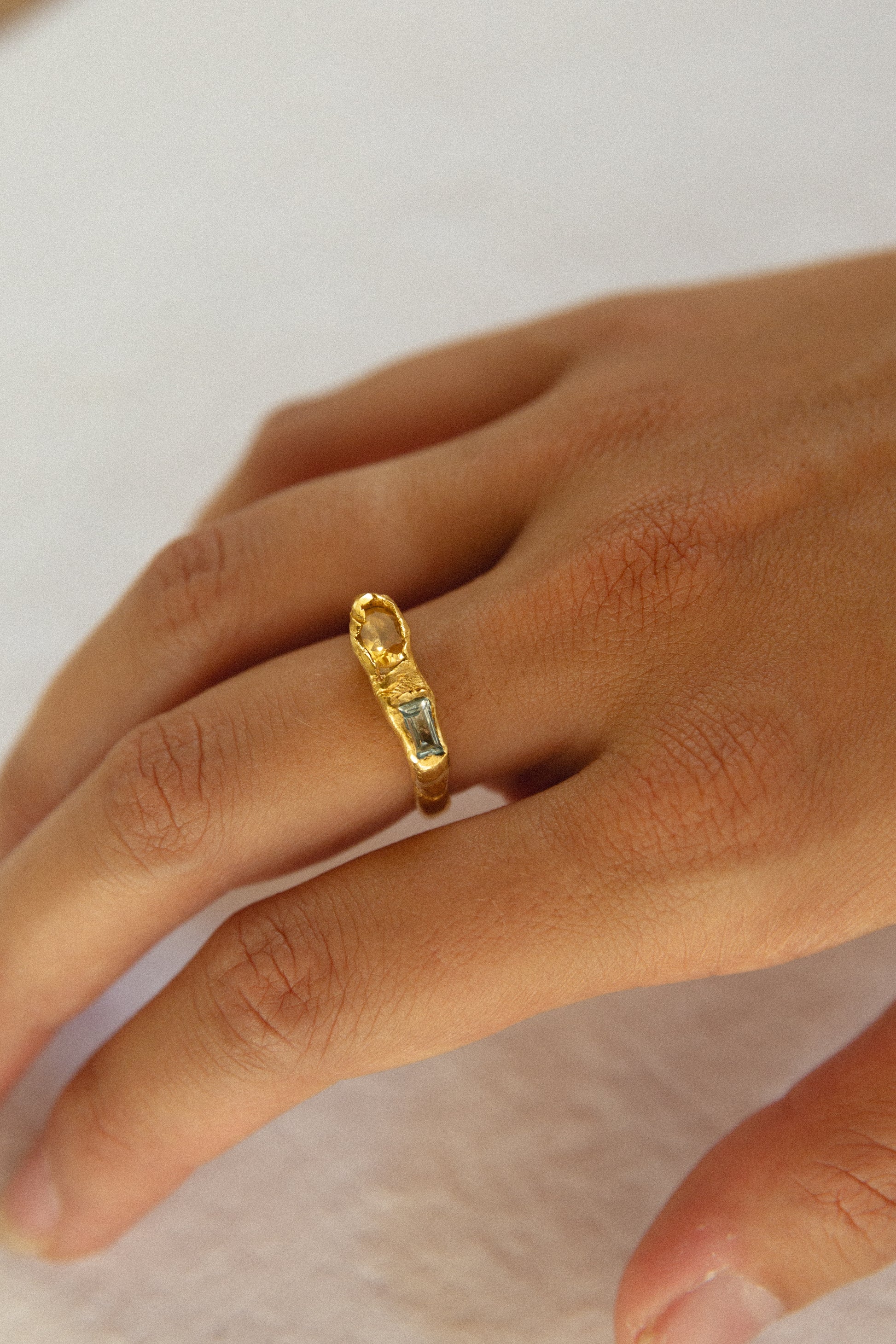Ring in 925 silver and 925 silver with 24 kt gold plating and 9k gold with stones.