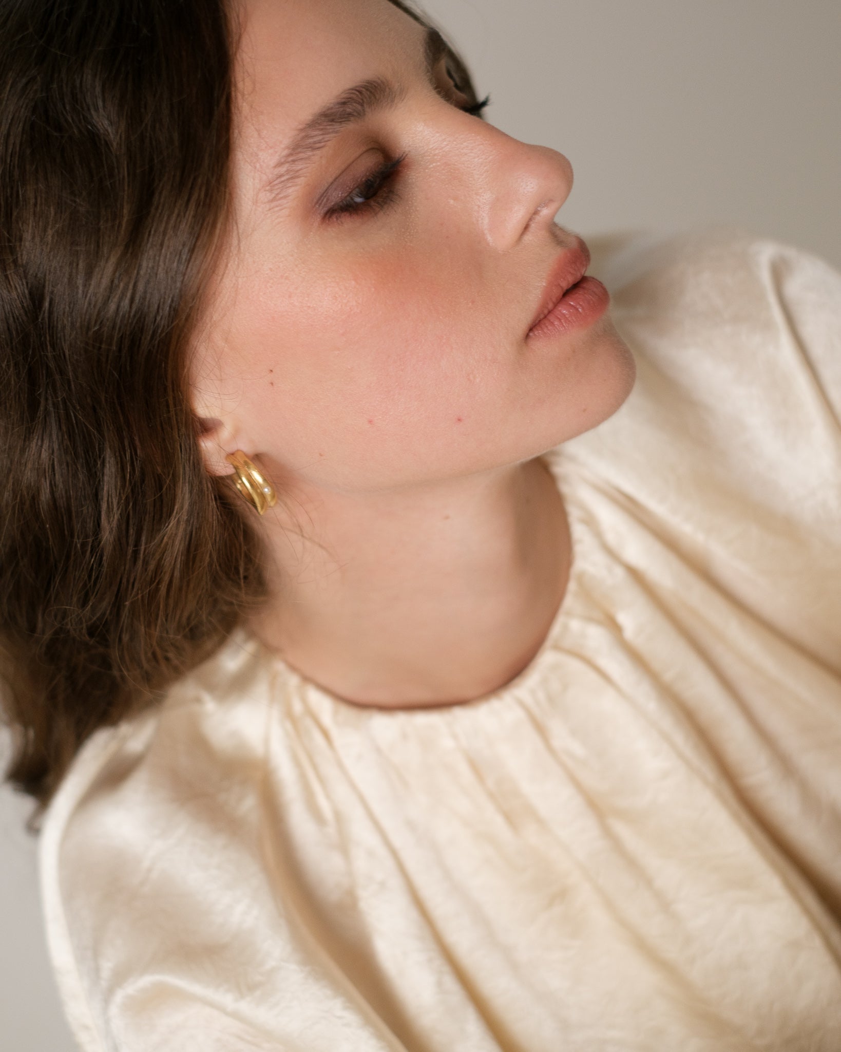 The Reflexo Earrings captures the gentle movement of light as it shifts across a surface. Its soft, sculpted curve holds a natural pearl that glows quietly, like a reflection of something intimate and true. Part of the Portrait Collection, it invites you to notice the subtle ways you shine, even in the calmest moments.