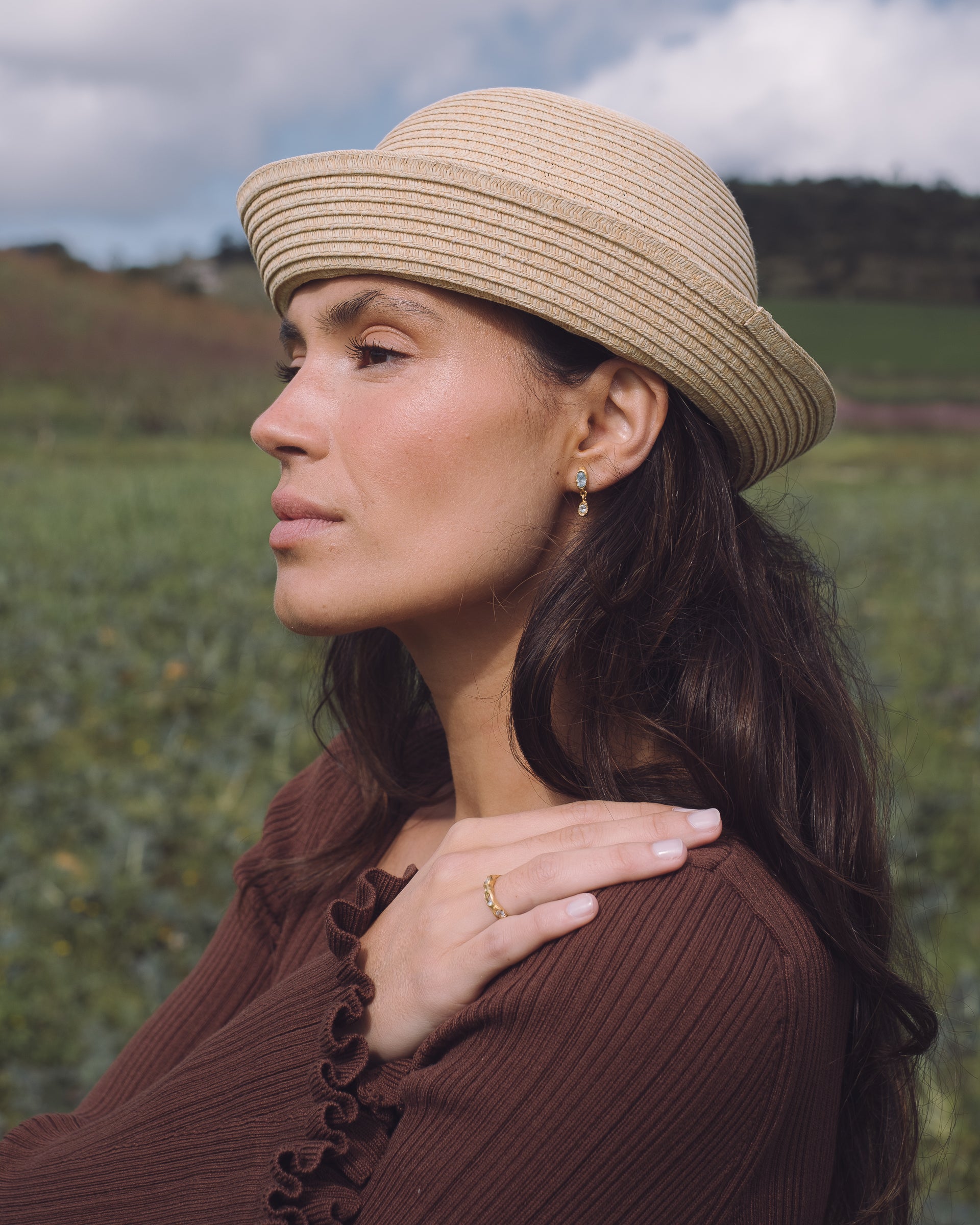 Inspired by those moments of pure joy that catch us off guard, these earrings are part of the Pequenos Prazeres collection. Made in silver, gold-plated silver, 9k or 19k gold, they feature two vibrant stones — aquamarine and sapphire — that sparkle with movement. A light and playful piece, for days filled with laughter.